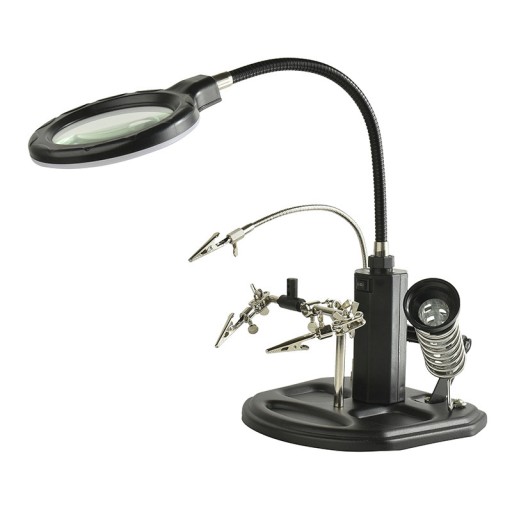 TRZECIA RĘKA Z LUPĄ I PODŚWIETLENIEM 16xLED - TE-802 + AKCESORIA