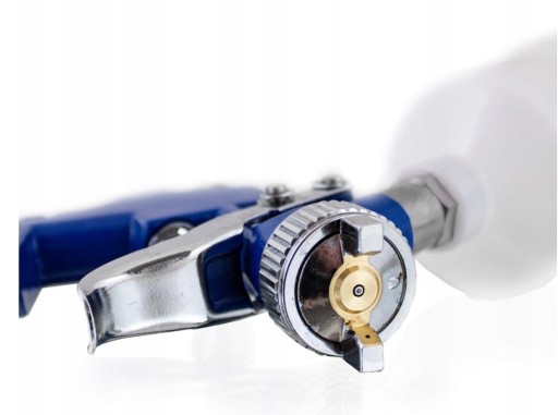 - Regulacja przepływu cieczy, umożliwiająca kontrolowanie ilości farby wydostającej się z dyszy.
