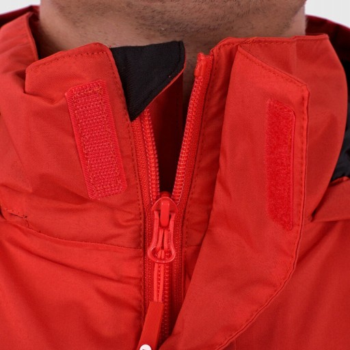 Materiał jest bardzo wytrzymały, odporny na przetarcia i rozciąganie. materiał zewnętrzny: 100% poliester siateczkowa podszewka: 100% poliester kurtka wyposażona w membranę Tecproof powłoka DWR klejone szwy zapobiegają przemakaniu odporność na przemakanie 5000mm/H20 oddychalność 5000g/m2 wentylacja pod pachami niewielka waga 2 zasuwane na zamek kieszenie boczne regulowany kaptur dobrze chroniący przed deszczem możliwość odpięcia kaptura wysoka stójka chroniąca przed chłodem i wiatrem ściągacz na dole: gumki ze stoperami. regulowane rzepem rękawy elementy odblaskowe