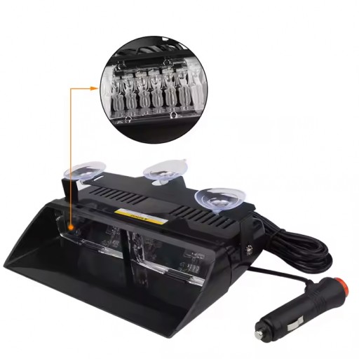 LED LAMPA CZERWONO NIEBIESKA BŁYSKOWA OSTRZEGAWCZA ZA SZYBĘ WŁĄCZNIK 18PROG