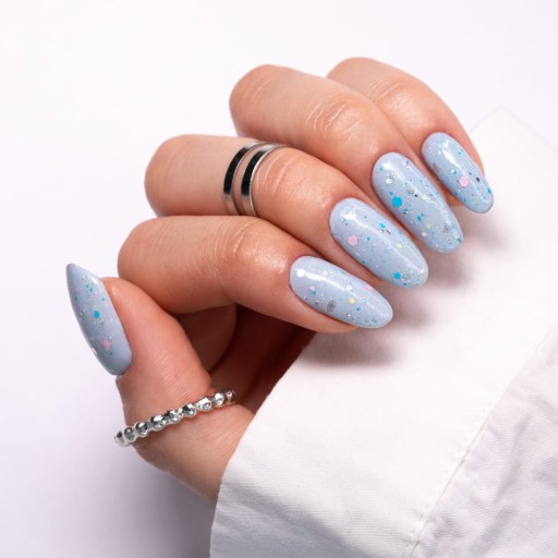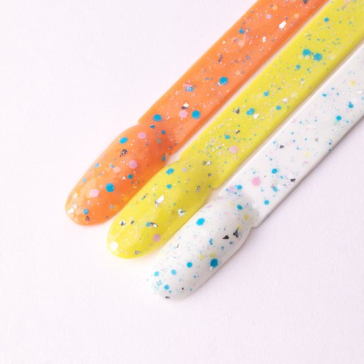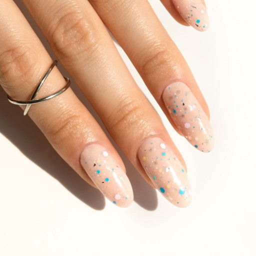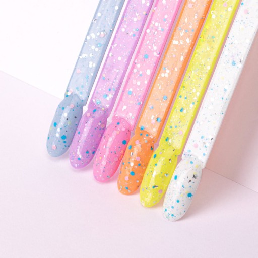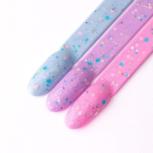 ✨ Po jednym przeciągnięciu pędzelkiem odmienisz swój kolor, dodając niepowtarzalnego charakteru i błysku dzięki pastelowym drobinkom o różnej wielkości oraz błyszczącym srebrnym płatkom.
