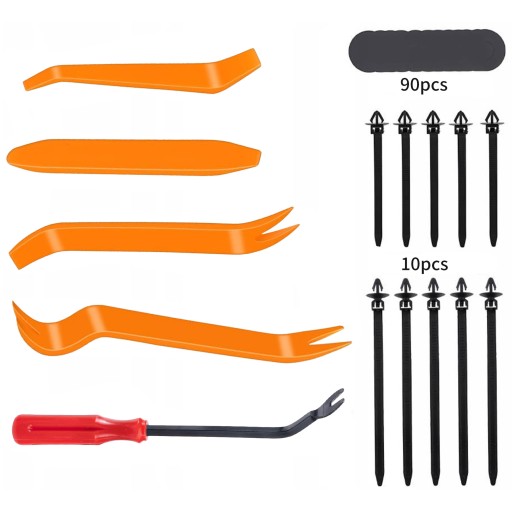 W zestawie znajdują się 4 łyżki o różnych kształtach i rozmiarach przeznaczone do rozbierania tapicerki samochodowej oraz różnego rodzaju elementów zatrzaskowych, 1 wyjmak do spinek i 10 trytek. Dzięki nim rozbierzesz każdy element tapicerki, nie uszkadzając jej przy tym!