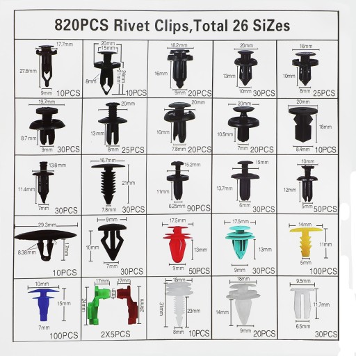 Obejmuje on 26 rodzajów klipsów, które są powszechnie stosowane w większości samochodów dostępnych na rynku.