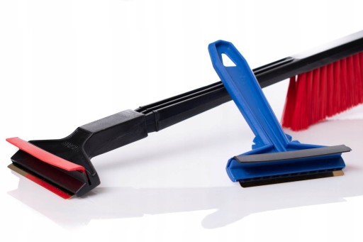 Produkt typu 2w1 posiada zmiotkę do śniegu wykonaną z miękkiego, bezpiecznego dla lakieru włosia.