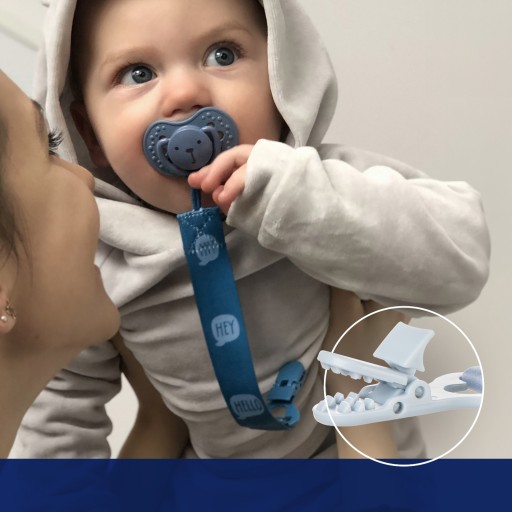 Smoczek zawsze pozostaje w zasięgu ręki, można je przypiąć do ubranka, fotelika czy do wózka.