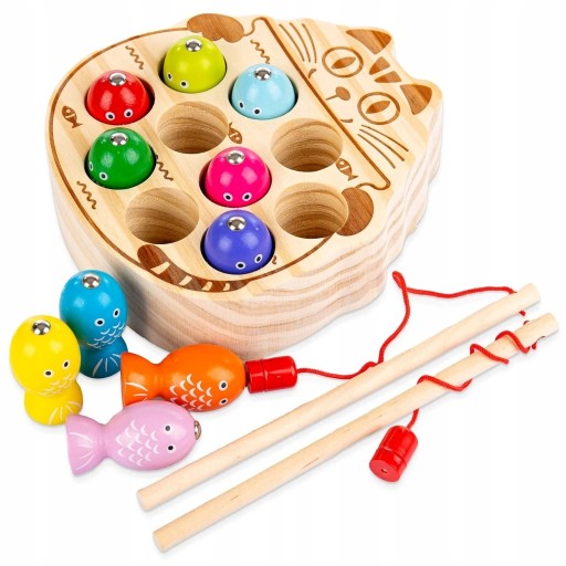 МАГНИТНАЯ ДЕРЕВЯННАЯ ИГРА «ПОЙМАЙ ЧЕРВЯКА» КОШКА ПОЙМАЙ РЫБКУ МОНТЕССОРИ