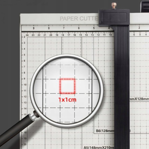 ✔️ Precyzyjna siatka miernicza: Blat gilotyny wyposażony jest w siatkę mierniczą, umożliwiającą precyzyjne cięcie papieru w formatach od B7 do A4, co ułatwia dopasowanie papieru do pożądanego rozmiaru.