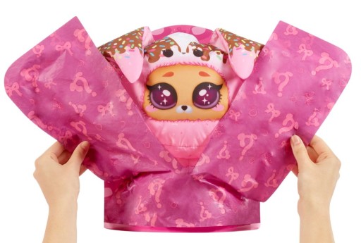 Sprawdź, co kryje się wewnątrz opakowania, najpierw usuwając kartonowy zamek błyskawiczny, a potem podnosząc różową osłonę. Rozerwij ozdobne opakowanie, by odkryć słodziutkiego szczeniaczka! Napompuj go, aby stał się jeszcze większy i śliczniejszy. Gdy już całkowicie się nadmucha, odepnij rzep z tyłu kostiumu, by zdobyć swoją laleczkę LOL Tweens Ali Dance!