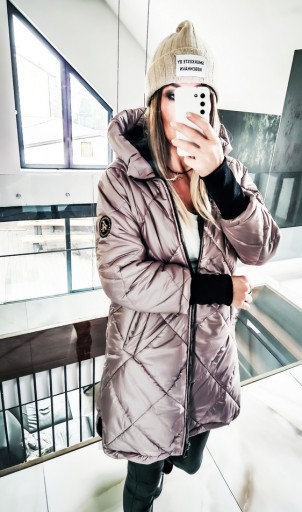 KURTKA DAMSKA PŁASZCZ PIKOWANA DŁUGA ASYMETRYCZNA XL