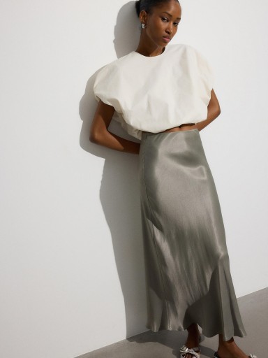 SPÓDNICA MIDAXI SATYNOWA PROSTA GŁADKA KLASYCZNA NA GUMCE ODCIEŃ KHAKI XL