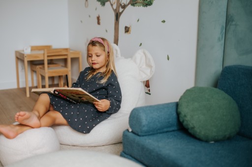 Komfort i wsparcie: Wypełniona granulatem styropianowym, pufa dopasowuje się do kształtu ciała, co zapewnia dziecku wygodę oraz odpowiednie wsparcie dla pleców i szyi. To sprawia, że pufa jest doskonała do długiego czytania książek, zabawy, a także relaksu po pełnym dniu aktywności.