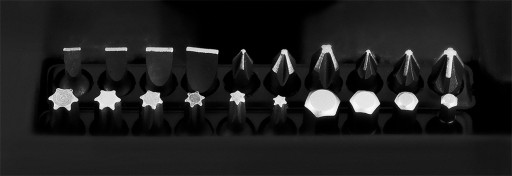 - Bity 50 mm (18 sztuk): SL3, SL4, SL5, PH1, PH2, PH3, PZ1, PZ2, T10, T15, T20, T25, T27, T30, H3, H4, H5, H6