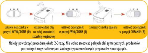 Niszczarki tnące na ścinki wymagają okresowej konserwacji - oliwienia noży tnących specjalnym olejem technicznym z aplikatorem