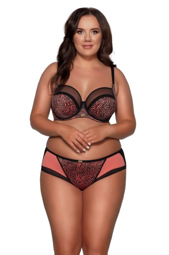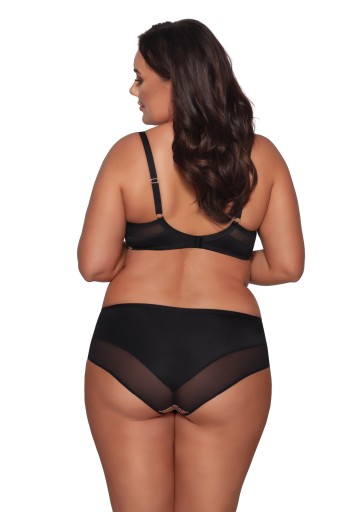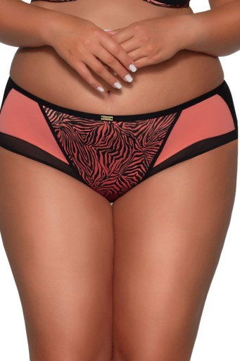 Figi o klasycznej wysokości zostały zaprojektowane z myślą o dyskrecji i elegancji. Tył majtek wykonany jest z gładkiej, czarnej tkaniny, a wykończenie podwójnie składaną listwą sprawia, że bielizna idealnie przylega do ciała, nie odznaczając się pod ubraniem. Dzięki temu figi są nie tylko wygodne, ale również niewidoczne pod nawet najbardziej dopasowanymi stylizacjami. Przód majtek zdobi efektowna wstawka z tkaniny o tygrysim wzorze, która dodaje całości drapieżnego charakteru. To doskonałe połączenie prostoty z odrobiną dzikości, idealne dla kobiet ceniących sobie komfort i styl. Skład: 91% Poliamid, 5% Bawełna, 4% Elastan