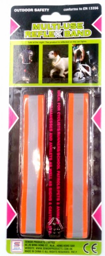 Dwie sztuki opasek ostrzegawczych, które są zapewnią widoczność do 200 m po zmroku, czy w pochmurne dni.