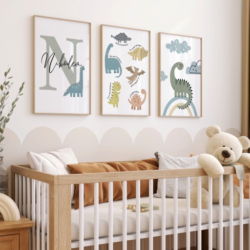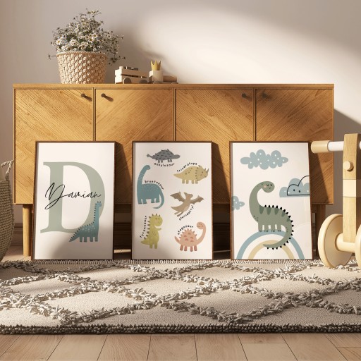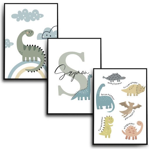 Plakaty bez ramy Dinozaury / Personalizowany plakat z imieniem dziecka / prezent dla chłopca