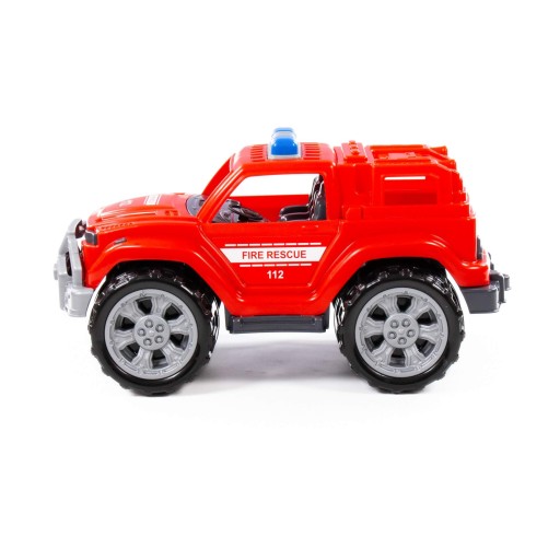 Pojazd posiada masywną, terenową konstrukcję, duże koła odznaczają się z daleka i dają wrażenie potęgi auta. Po boku znajdują się białe naklejki z napisem FIRE RESCUE , które mówią o przeznaczeniu auta. Wewnątrz kabina kierowcy oraz tył auta wykonano z najmniejszym szczegółem, co przypomina realistyczny odpowiednik. Zabawka jest super gadżetem dla każdego małego miłośnika motoryzacji, ale także zawodu strażaka. Pojazd poszerzy kolekcję, przynosząc mu ogrom radości z zabawy.