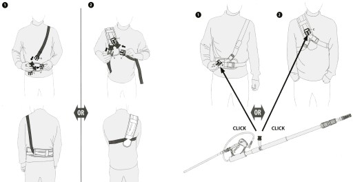 Pas posiada regulowany pasek dzięki czemu może być noszony przez osoby o różnych rozmiarach. Zaczep mocujący do lancy wystarczy przykręcić tylko raz, później chcąc opuścić lancę nie trzeba ściągać całego pasa ale wystarczy rozpiąć solidne zaczepy. Szelki mają również usztywnienie zwiększające komfort pracy oraz zapobiegające "wrzynaniu" się pasa w ciało operatora.