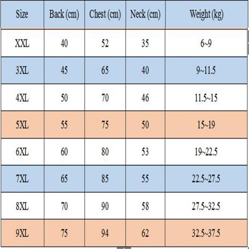 - 7XL (szyja: 55 cm, klatka: 80 cm, długość: 65 cm)