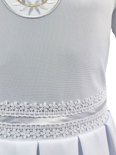 Nieskazitelnie biała alba o sukienkowym kroju to wyjątkowy strój dla dziewczynki przystępującej do Pierwszej Komunii Świętej.