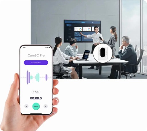 1. Dedykowana aplikacja CamSC Pro: Aplikacja zapewnia pełną kontrolę nad urządzeniem z poziomu smartfona. Jest intuicyjna i prosta w obsłudze, dzięki czemu konfiguracja dyktafonu zajmuje tylko kilka chwil.