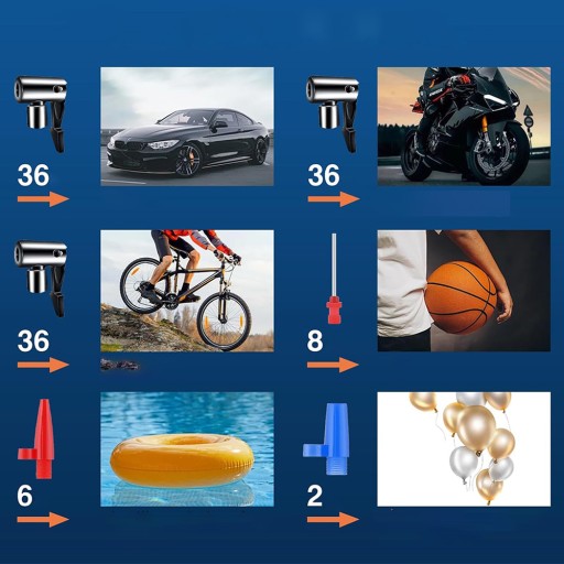 🚗🚗- Wyposażone w 3 dysze, odpowiednie do różnych typów rowerów, motocykli, samochodów, piłek, kółek do pływania itp.