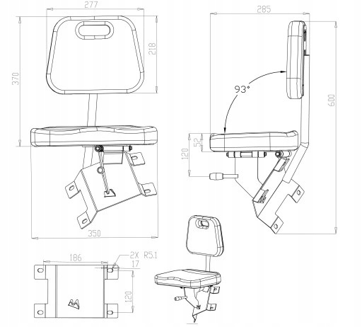 - Szerokość poduszek siedzeń / podpórek-356/280 mm