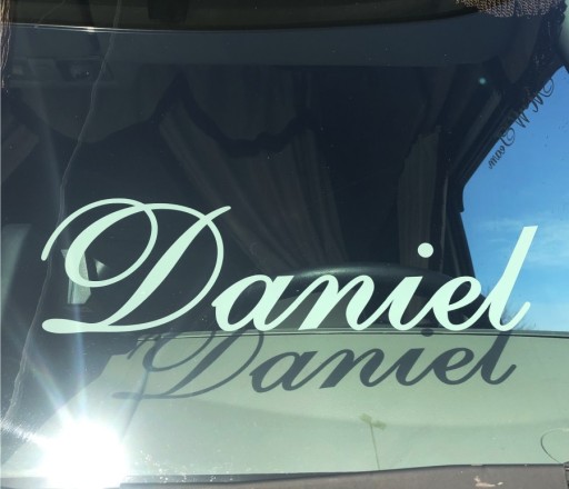 Naklejka wykonaną metodą ploterową wycinaną z folii odpornej na warunki atmosferyczne, naklejka nie posiada tła i jest pokryta transportówką aby ułatwić naklejenie ... W cenie max. dwa projekty ( zmiany czcionki)