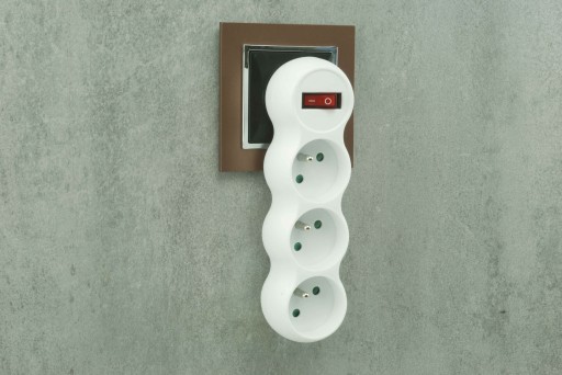 Dzięki temu rozgałęźnikowi rozdzielisz jedno gniazdo na trzy wtyczki. . Dwie wtyczki wychodzą z boku a jedno z dołu gniazdka.