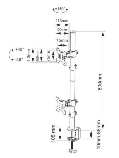 - uchwyt pasuje do wszystkich monitorów 13-32" i wadze do 8 kg oraz rozstawie otworów montażowych 75x75 mm lub 100x100 mm
