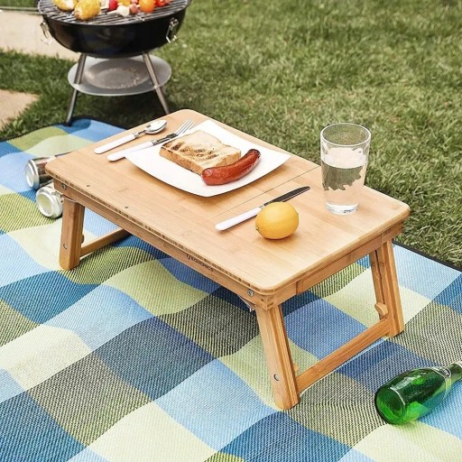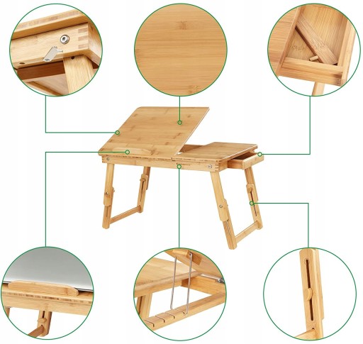 Biurko stolik na laptopa wykonana z naturalnego bambusa, struktura jest prosta, solidna i trwała. Z regulowaną wysokością i możliwością złożenia.