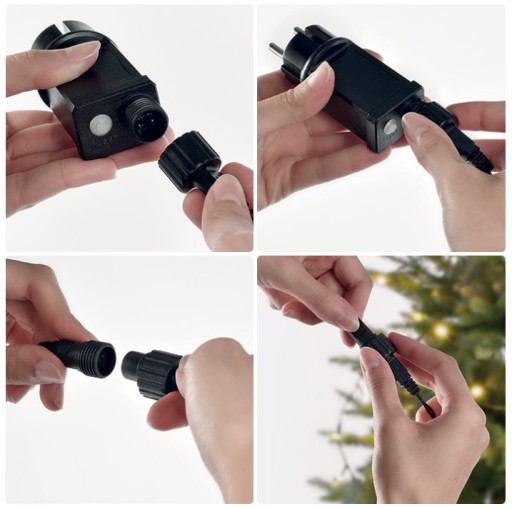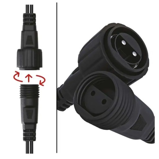 - Koncentrator rozdziela oświetlenie na dwa końce z możliwością podłączenia. Dzięki temu można oświetlenie rozdzielić w kilku kierunkach, tworząc prawdziwie przestrzenną dekorację świąteczną.