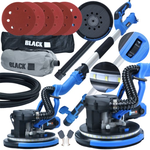 Szlifierka Żyrafa do gipsu i gładzi, model BLACK bezpyłowa z LED 360, to niezastąpione narzędzie dla profesjonalistów zajmujących się wykończeniami wnętrz. Wyróżnia się dynamiczną, przegubową konstrukcją, która umożliwia wygodne operowanie we wszystkich płaszczyznach. UWAGA !!! PRZED ROZPOCZĘCIEM PRACY I PRZYCZEPIENIEM PAPIERU NALEŻY ZDJĄĆ PLASTIKOWE ZABEZPIECZENIE NA ŚRODKU TALERZA Z RZEPEM !!