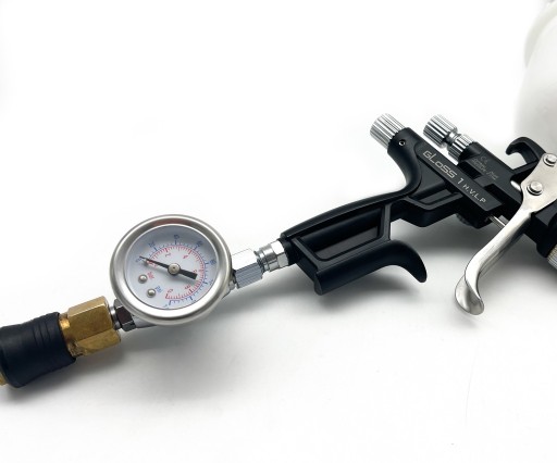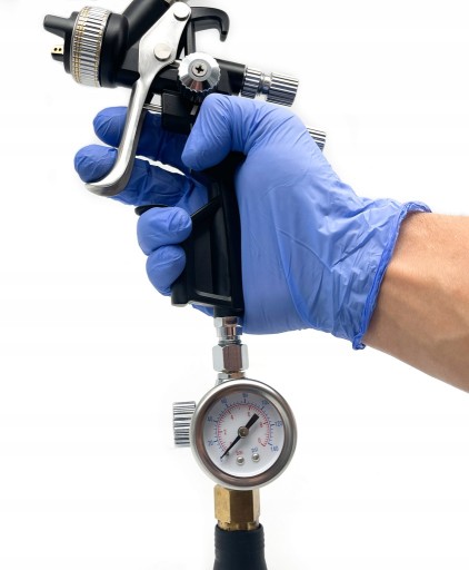 - manometr do montażu na rękojeści pistoletu lakierniczego przeznaczony jest do kontroli i precyzyjnej regulacji ciśnienia powietrza na wejściu do pistoletu malarskiego;