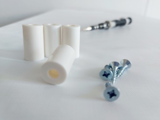 W zestawie kołki montażowe w kolorze białym oraz komplet śrub