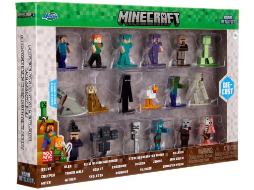 Stwórz własną przygodę z ulubionymi postaciami z Minecrafta! Te odlewane figurki, wiernie odwzorowujące postacie, z pewnością wyróżnią się w każdej kolekcji! Ta kolekcja figurek to prawdziwa gratka dla fanów Minecrafta. W zestawie znajdziesz 18 metalowych figurek. Każda ma 4 cm wysokości i jest bardzo dobrze odwzorowana, oddając szczegóły postaci z gry.