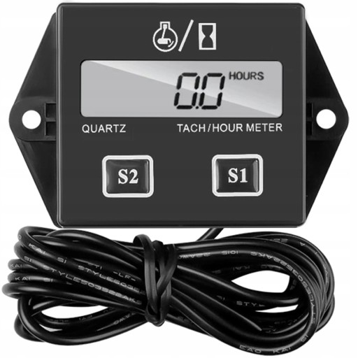 Licznik godzin pracy silnika to niewielkich wymiarów uniwersalne urządzenie dedykowane do silników spalinowych 2 i 4 tłokowych. Umożliwia on pomiar czasu pracy quadów, skuterów, motocykli, kosiarek, agregatów prądotwórczych, maszyn budowlanych, wózków magazynowych, a także wielu innych maszyn spalinowych. Licznik czasu pracy silnika posiada czytelny wyświetlacz, a jego obsługa jest bardzo prosta.