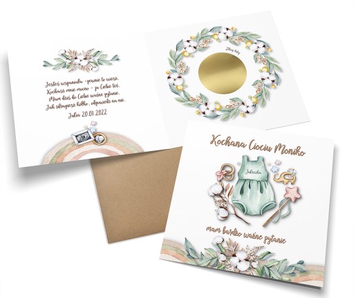Spersonalizowana Zdrapka z pytaniem o zostanie Mamą/Matką Chrzestną z kopertą (białą lub eco) do wyboru.