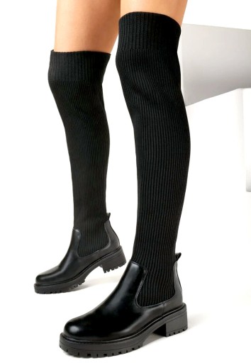 БОТИНКИ ЖЕНСКИЕ ДЛИННЫЕ УТЕПЛЕННЫЕ, ЧЕРНЫЙ НОСОК R39