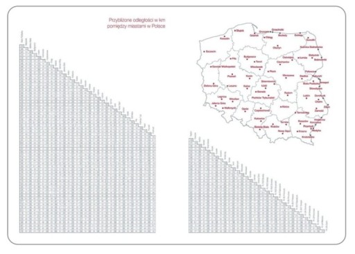 - odległości pomiędzy ważniejszymi miejscowościami