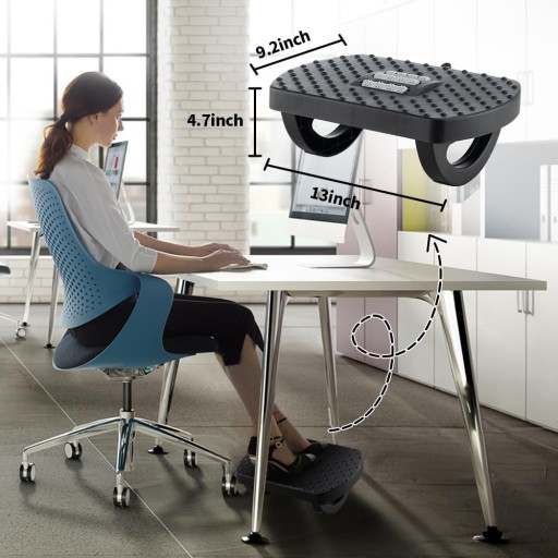 Ten podnóżek pod biurko ma regulację 180°, aby podeprzeć nogi pod preferowanym kątem i umożliwia bezproblemowe przesuwanie stóp do przodu i do tyłu. Przenośny podnóżek to coś więcej niż tylko miejsce do odpoczywania stóp, to narzędzie do dekompresji całego ciała.