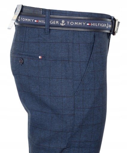 Przedmiotem naszej oferty są spodnie męskie – materiałowe, w kolorze niebieskim w kratę .