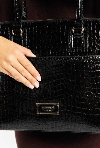 CZARNA TOREBKA AKTÓWKA MONNARI KLASYCZNA LAKIEROWANA