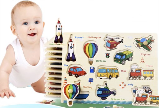 Układanki są nieodłącznym elementem rozwoju małego dziecka. Poznawanie i dopasowywanie kształtów sprawia dużo radości i zachęca dziecko do pokonywania coraz większych trudności. Elementy z uchwytami pomogą maluszkowi ćwiczyć chwytanie .Puzzle przyciągają wzrok swoimi kolorami i dużymi elementami. Ze względu na to, że jest to drewniana układanka będzie można się nią cieszyć bardzo długi czas.