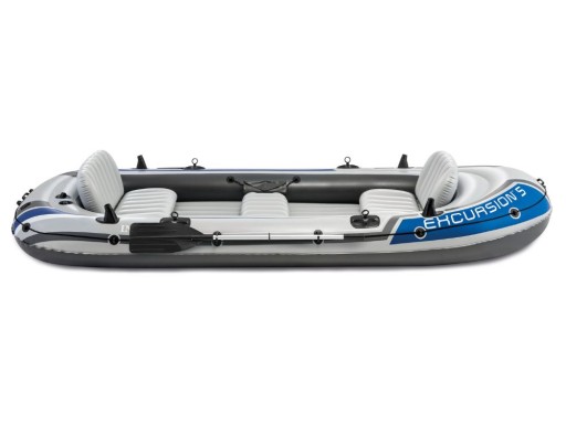 Excursion 5 marki Intex został wykonany z mocnego i wytrzymałego materiału winylowego - SuperStrong PVC zapewnia doskonałą trwałość, wysoką odporność na uderzenia jak i ścieranie. Podłoga w pontonie jest nadmuchiwana, a dla komfortu użytkowania został wyposażony w nadmuchiwane siedzenia z oparciem .