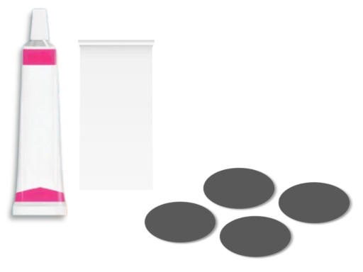W zestawie znajduje się również przeźroczysta łatka o wymiarach około 3 cm x 10 cm, dzięki której będzie w stanie załatać drobne uszkodzenia oraz 4 łatki.