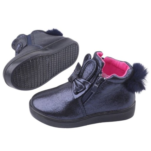Sneakersy dziecięce ,na grubszej podeszwie. Bardzo nowoczesne botki z ozdobnymi uszkami na przodzie bucika,a z tyłu uroczy pomponik . Suwak ułatwiający wkadanie obuwia . Model pasuje do wielu stylizacji.