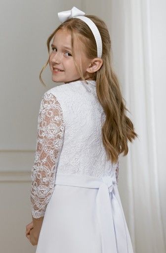 Alba komunijna sukienkowa PM534 to subtelna elegancja z akcentem koronki!