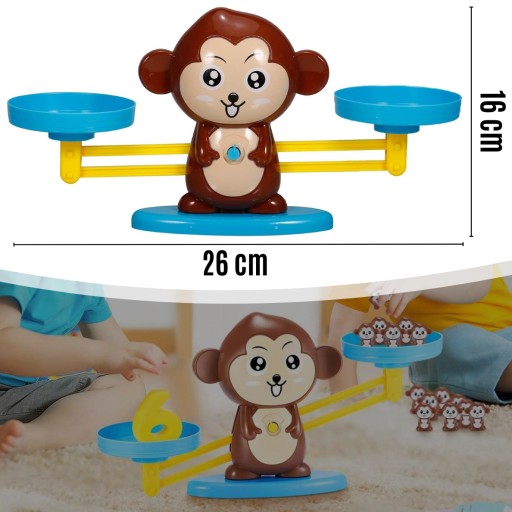 ✅ Kolorową wagę szalkową – Waga z uroczą małpką, która ułatwia naukę podstawowych działań matematycznych poprzez zabawę.