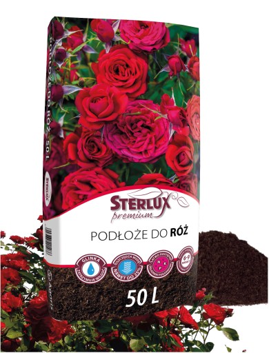 ZIEMIA DO RÓŻ PODŁOŻE STERLUX KWIATÓW ROŚLIN PREMIUM 50L OSZCZĘDZA WODE